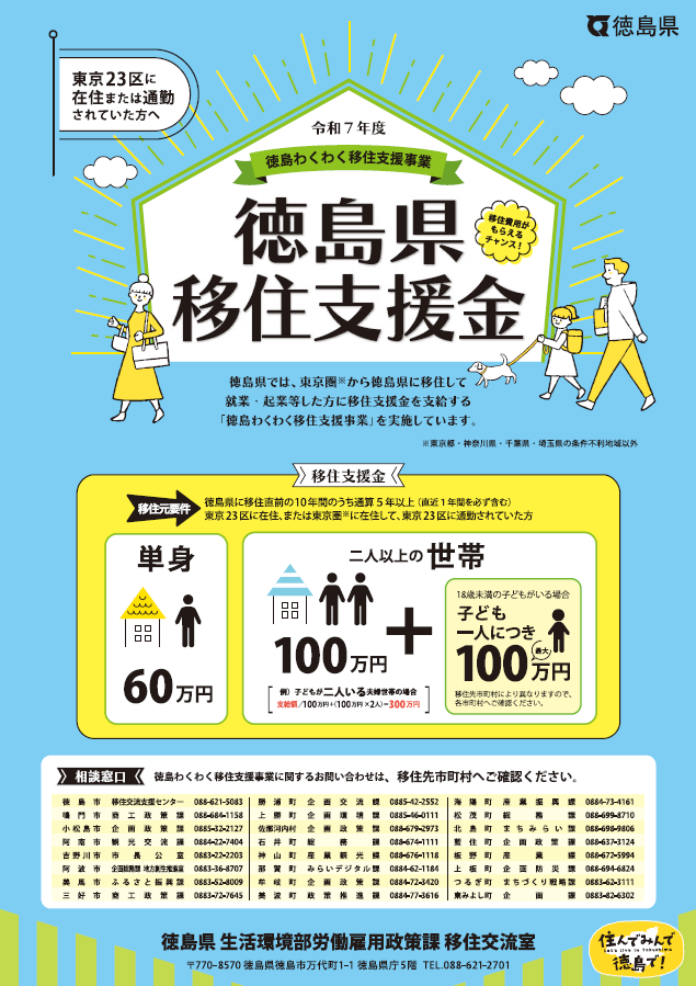 婚姻し、夫婦がともに美波町の住民となった場合又は婚姻後3月以内に夫妻ともに住民となった場合、夫婦につき3万円を交付する。